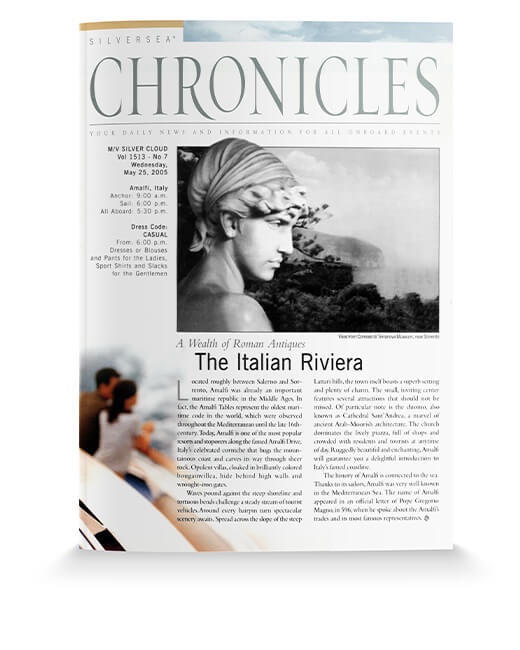 Silversea gestaltet und produziert. Wenngleich die Produktion an Bord nur Schwarz-Weiß-Druck auf farbigem Papier